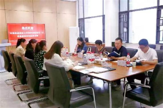 参观该实训基地后,考察团队与学校代表在会议室开展座谈,会上,中南林业科技大学涉外学院副院长马宗艳介绍了我院教育理念、教学特色、管理体制等。
