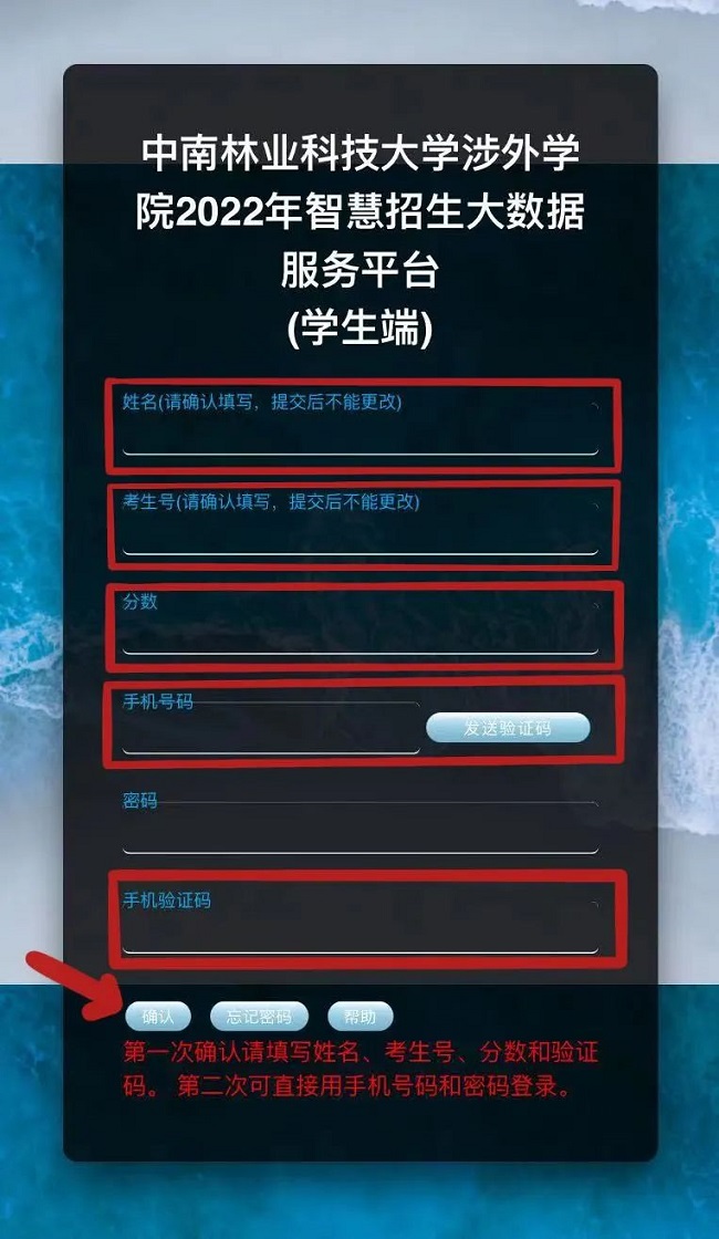 3. 输入姓名、考生号、分数、手机和验证码,点击确认登陆系统。