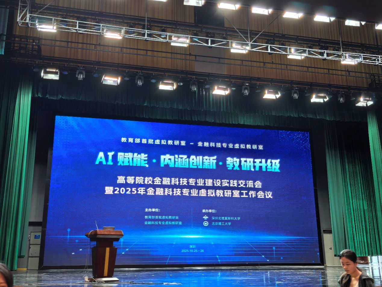 10 月 25 日至 26 日,由教育部金融科技虚拟教研室主办,深圳北理莫斯科大学经济系联合北京理工大学承办的 “高等院校金融科技专业建设实践交流会暨 2025 年金融科技专业虚拟教研室工作会议” 在深圳召开。中南林业科技大学涉外学院数字经济产业学院肖菲副院长和王倩茹老师参会,与来自中央财经大学、复旦大学、南方科技大学等 100 余所高校的近 200 名专家学者围绕 “AI 赋能・内涵创新・教研升级” 主题深入研讨,为我院金融科技专业高质量发展汲取前沿经验。