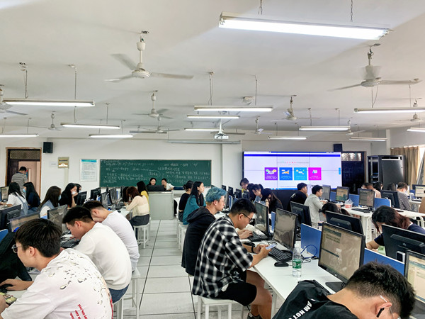 随后,我院教师代表李瀛老师和熊雅璐老师在李芝兰老师带领下,考察了武工院跨境电商学生们的课堂实操,并积极展开讨论。