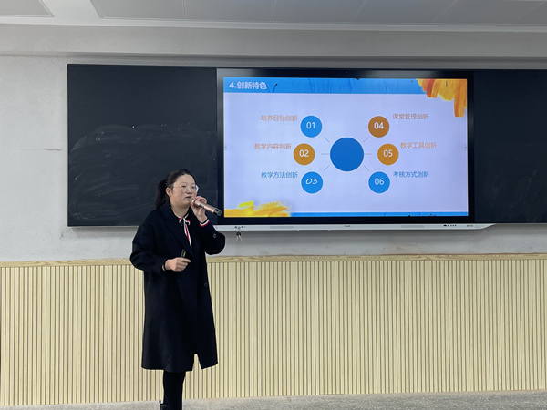 课堂教学竞赛和教学创新大赛初赛依次进行,其中有3名教师参加课堂教学竞赛;2名教师参加教学创新大赛。参赛教师均进行了精心准备,对教学目标、教学重点、难点、教学等环节的设计和组合都有较为科学的把握,且能够运用多种教学手段进行辅助教学,教师的基本素质得到充分展现。