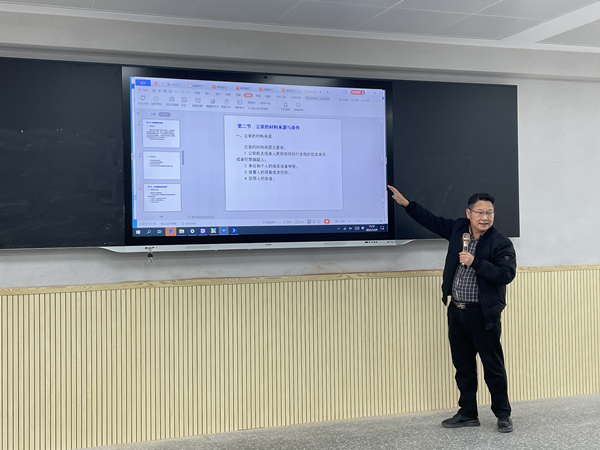 法学专业文双百老师参赛的讲课内容为《立案》。文双百老师作为法学资深教师,同时具备丰富的法律实务操作经验,在课堂上对案例的引用信手拈来。不同于简单的案例介绍,文老师使用的案例经典,贯穿课堂全程,内容衔接紧密,并在授课过程中巧妙地进行了知识拓展。