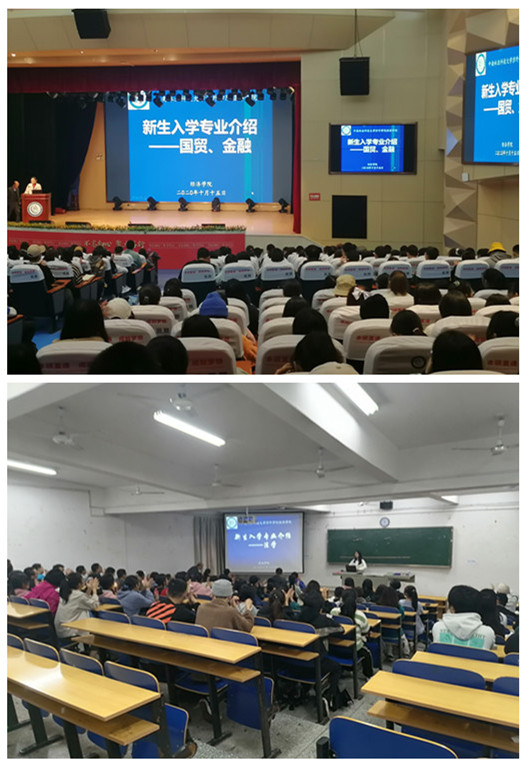 10月15日,经济学院针对2020级新生在第一教学楼1210教室举办了法学专业入学教育及专业介绍,在报告厅举办了金融和国贸专业入学教育及专业介绍大会。经济院长刘天祥教授、各专业教研室主任及专业任课老师出席会议。其中入学教育由刘天祥教授主讲,各专业介绍则分别由各教研室主任主讲。