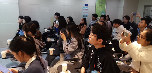 理财经理高健淇给大家讲解了理财客户经理的岗位职责、每天的主要任务以及日常工作中需注意的事项并带领同学们参观了银行大厅,详细介绍厅堂中各项设备的功能用途,大家的疑惑都得到了耐心解答。
