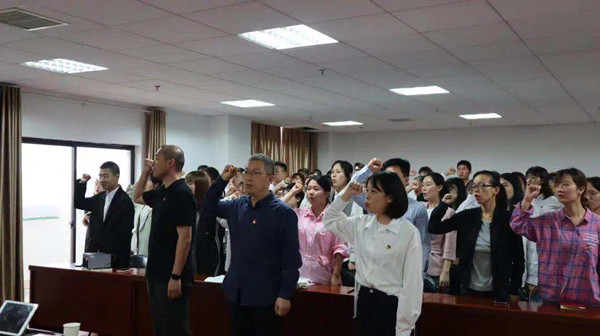 大会接近尾声,由周迪书记带领全体毕业生党员重温入党誓词。党员们举起右手,面向党旗,郑重的念着誓词“我志愿加入中国共产党,拥护党的纲领,遵守党的章程,履行党员义务,执行党的决定,严守党的纪律,保守党的机密,对党忠诚,积极工作,为共产主义奋斗终身,随时准备为党和人民牺牲一切,永不叛党。”入党时的那份沉甸甸的志愿申请,那份爱党敬党的忠诚表白,渴望入党时的炽热情怀。随着“宣誓人:xxx”坚定的声音也将融入至为共产主义事业奋斗的理想中去。