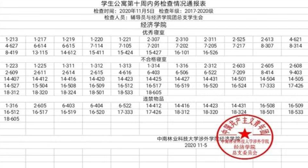 为督促同学们保持寝室干净整洁,给自己营造一个安全舒适的学习生活环境,同时也为进一步保证学生住宿安全,深入了解学生学习、生活情况,11月5日晚,经济学院周迪书记、全体辅导员以及经济学院团总支、学生会成员对我院全体学生宿舍进行了一轮突击检查。