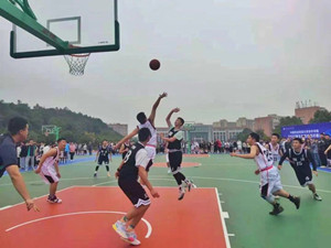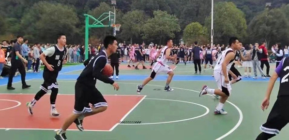 篮球在球员间穿梭,起跳,转体,越过,在两队队员的激烈追逐拼搏下,金融队把握机会,最后以完美的弧线,“唰”的一声正中靶心,稳稳拿下两分赢得了这场比赛。