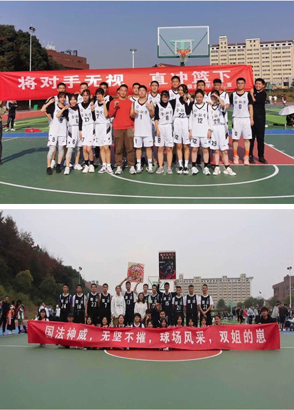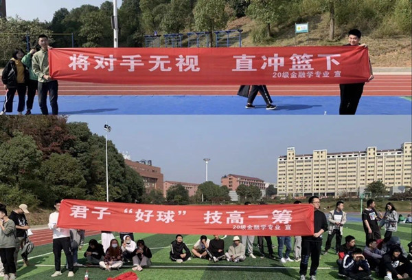 首先映入我们眼帘的是霸气的加油口号:“国法神威,无坚不摧”、“将对手无视,直冲篮下”。经济学院国法篮球队和金融篮球队的助威口号字里行间都透露着自信与激情!