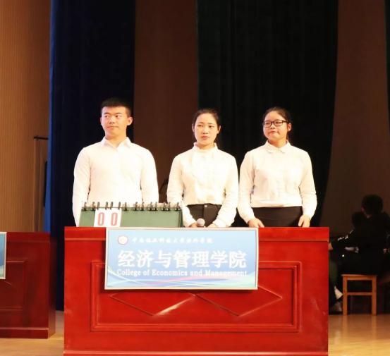 2018级法学2班的黄静蕾,2018级会计学CMA1班的唐立民,2018级人力资源2班的王飘婷代表经济与管理学院参加了知识竞答比赛环节,三位的表现非常优秀,尤其是小哥哥在抢答环节背出的《梦游天姥吟留别》,《蜀道难》更是征服了在场的观众们,努力得分的你们,真的是太棒了!