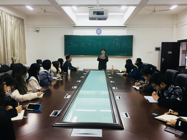 12月22日,经济学院在第一教学楼1204召开2021年年终述职大会,学院领导班子认真总结回顾2021年度的中心工作,进一步统一思想,提高认识,理清思路,推动学院工作在新的一年里再上新台阶。参加会议的有中南林业科技大学涉外学院院长助理刘诗福、教务处处长方东玉、经济学院副院长胥若男、经济学院党总支书记周迪及学院全体无课程安排的教职工。