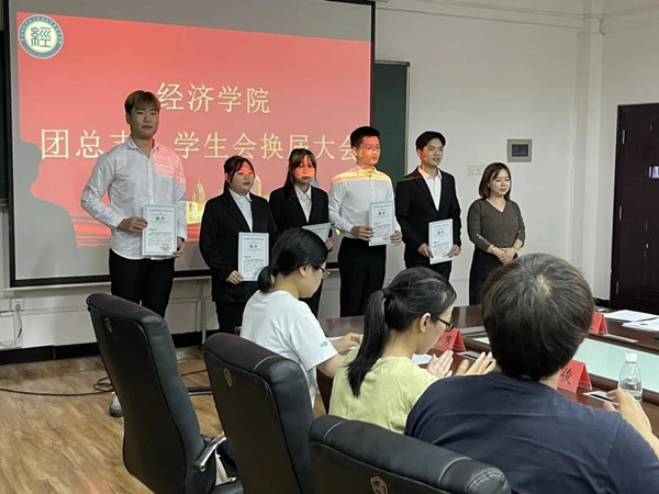 2021年9月29日18:30我院团总支、学生会换届工作会议在1204如期举行,由20级国贸专业陈思捷同学担任主持人,出席本次换届大会的嘉宾有经济学院党总支书记周迪、经济学院副院长胥若男,经济学院团总支书记赵双双,经济学院学生第二党支部书记杨洋、学生第三党支部书记周慧梅以及经济学院辅导员蔡俊老师。