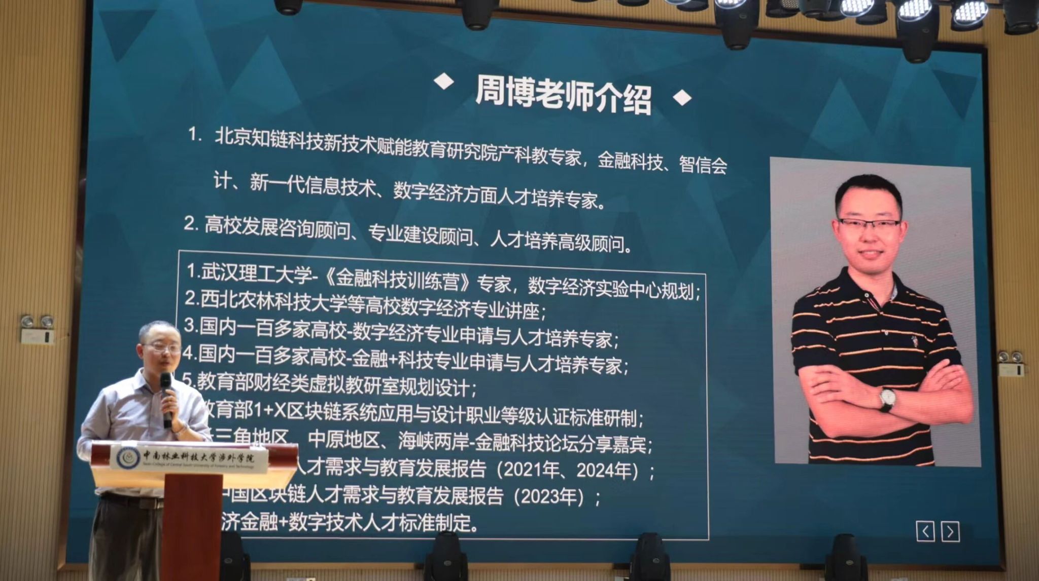 10 月 16 日,中南林业科技大学涉外学院数字经济产业学院特邀知名数字经济与金融科技专家周博老师,为 25 级新生带来主题为 “未来已来 —— 锻造未来数字经济与金融职业发展核心竞争力” 的专题讲座,为新生拨开专业迷雾,明晰职业发展方向。