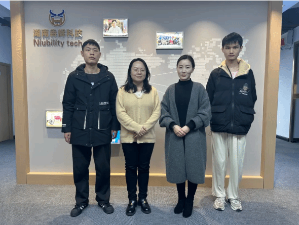 为深入贯彻落实就业优先战略,精准对接市场需求,拓宽毕业生就业渠道,11月28日下午,我校经济学院副院长肖菲带领经济学院2022届国际经济与贸易专业学生李敬寒、余文康一行,赴湖南犇辉科技有限责任公司开展访企拓岗专项行动,通过了解企业文化、座谈交流以及当面面试等形式,搭建校地校企合作新桥梁。犇辉科技有限公司董事长刘志军、行政部张经理全程陪同。
