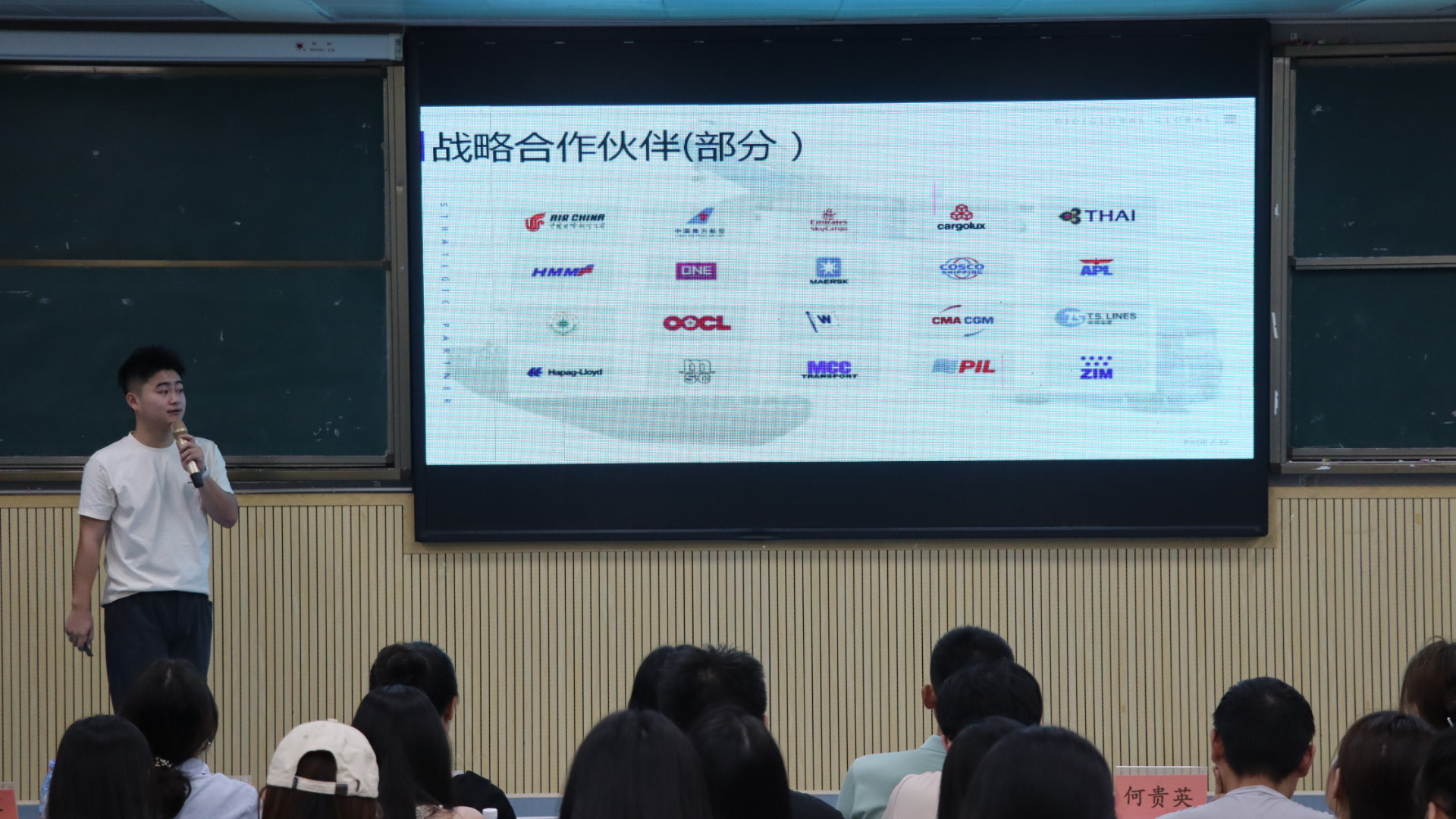 随后的招聘宣讲环节,迪迪国际物流国内销售部经理麦佳鑫全面介绍了公司的发展历程、主营业务及行业领先优势,重点解读了校招流程、薪酬福利与晋升机制。详实的讲解让在场毕业生对企业有了清晰认知,为后续求职做好准备。在校友分享环节,2025届国贸专业毕业生、现任迪迪国际物流海外业务负责人的郭服婷学姐现身。她提到,去年被迪迪“惜才爱才”的氛围吸引入职,公司为新人提供海外业务全流程培养,还给予独立对接客户、拓展资源的机会。凭借这些支持,她入职两年内就从职场新人成长为海外业务负责人,期间独立完成过多项跨境物流业务的方案设计与落地。她建议学弟学妹,“先就业再择业”很重要,迪迪开放的发展环境能助力快速成长,要主动抓住优质平台机会。