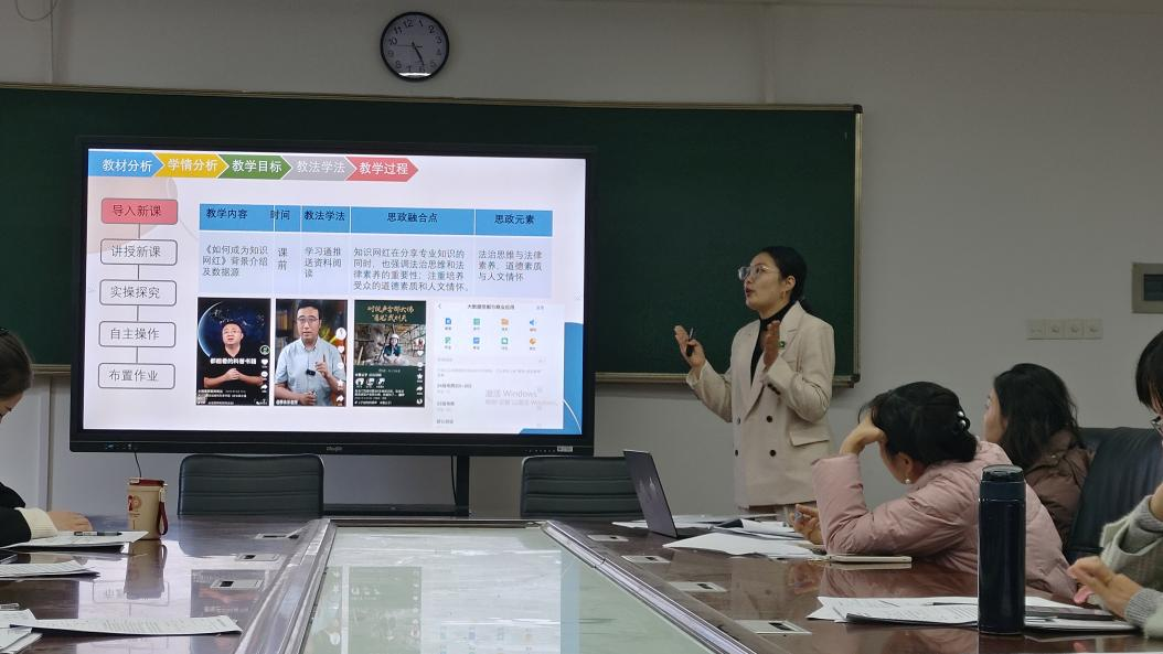 最后一位上台的是周璟老师,她的说课题目是《Excel商务数据分析与应用——建立回归模型》。周老师从Excel的基本操作讲起,逐步深入到数据清洗、数据可视化及回归分析等核心内容。她从“教材分析”出发,解读Excel在商务数据分析中的核心价值;结合“学情分析”,把握学生基础与需求。明确“教学目标”为掌握回归模型建立方法,提升数据分析能力。采用“教法学法”融合,注重实操演练。精心规划“教学过程”,确保学生循序渐进地学习。最后,通过“教学反思”,总结教学经验,持续优化教学策略,致力于提升学生Excel商务数据分析技能。周老师强调,在大数据时代,数据分析已成为企业决策的重要依据,她希望通过这门课程,能够培养学生的数据分析能力和解决实际问题的能力。