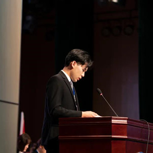 经济学院党总支书记周迪致辞。周迪书记在回望过去一年经济学院的教学、专业建设、社会实践等方面取得发展和进步的同时,也期待各部门能继续团结协作、共同奋进、再创佳绩。周迪书记希望团总支学生会的成员能够做到“在其位,谋其职,担其责”;能够以积极向上的奋斗姿态,执笔书写团学新篇章;能够为每一个学生都树立好榜样,将经济学院的优良传统发扬光大!