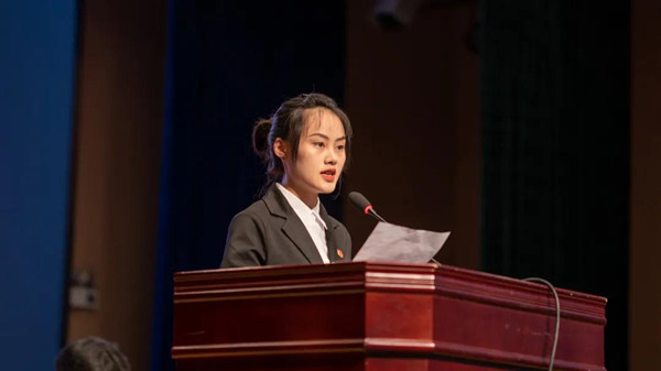 闭幕式伊始,赵双双老师倡议经济学院全体学生:勤奋学习,与时俱进。遵纪守法,诚实守信,锤炼品德修为。胸怀祖国,志存高远,树立远大理想。