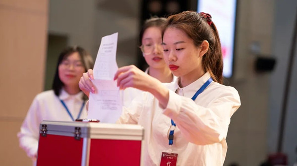 总监票人邵琳琳公布计票结果,大会执行主席赵双双宣布当选中南林业科技大学涉外学院经济学院第二届团总支委员、学生委员会委员名单。
