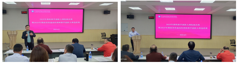 4月9日下午,学院2025年教师教学创新大赛院级决赛暨湖南省普通高校教师教学创新大赛选拔赛在明德楼1210室举行。本次比赛的12个参赛团队通过各二级学院选拨推荐,集中展示了各学院教师在教学创新中成果。赛事由教务处处长方东玉主持,学院院长周志宏、各二级学院院长、副院长及学术带头人共同担任评委,确保了评审的专业性与权威性。