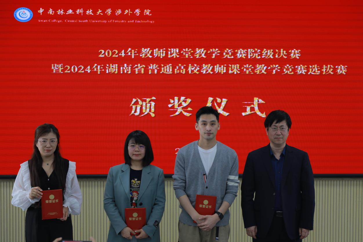 赛事最后,学院院长周志宏为获奖教师颁发奖状。此次竞赛精彩纷呈,亮点频出,具有十分重要的意义。近年来,我校高度重视教学竞赛的组织参与工作,希望通过积极备战教学竞赛,以赛促教、以赛促改,激发青年教师的教学热情,持续提升教学和学术水平,共同推动我校课堂教学高质量建设。