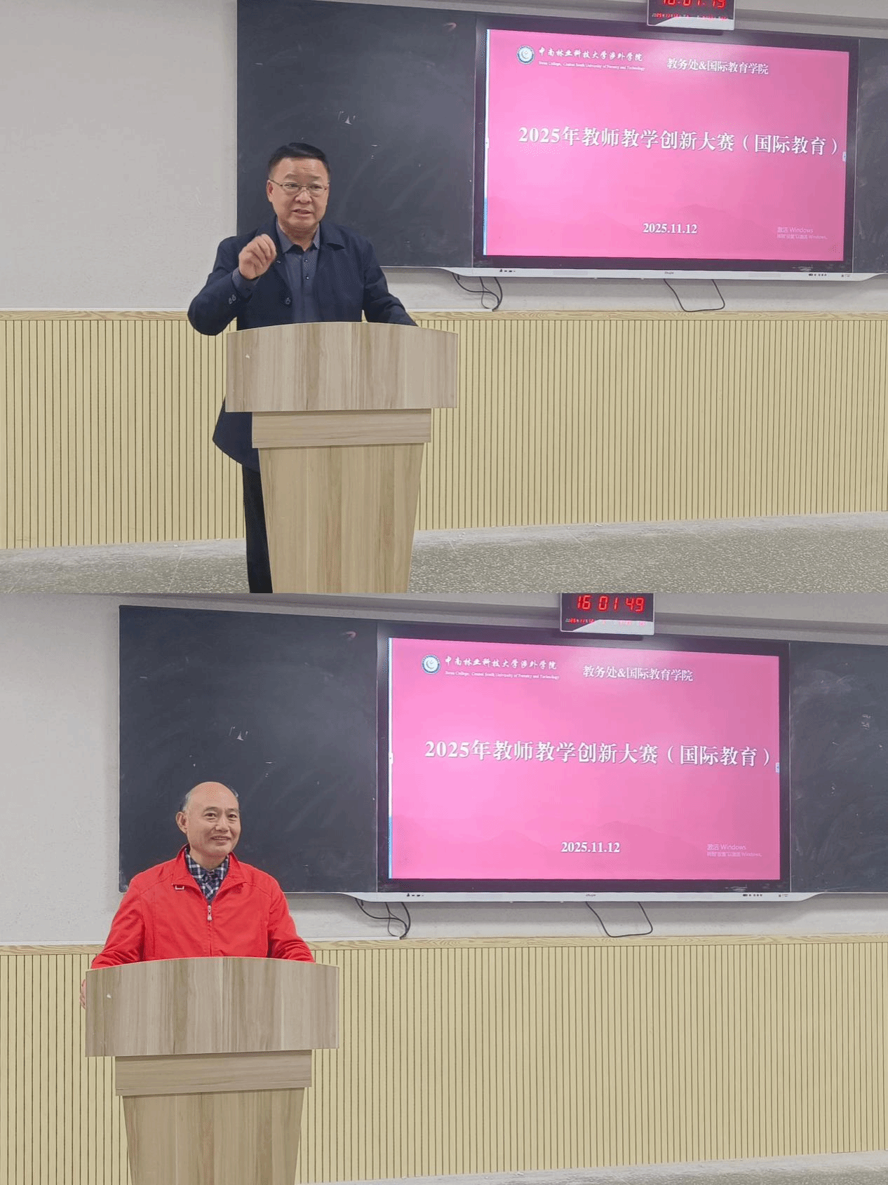 在比赛过程中,经济学院张贵华院长和管理学院尹少华院长结合评分标准,从此次赛事亮点及待改进方向两个大的方面,对参赛教师的表现进行了深入点评与专业指导,为教师们后续改进提升提供了宝贵建议。他们指出:参赛的国际特色需强化,多数教师未充分体现国际教育元素,双语/英文应用碎片化,缺乏系统性国际化教学设计;教学创新需明确方向,避免混淆教学创新与学科创新;教学细节需优化,部分教师过度依赖PPT,板书重点提示不足;课程思政融入需深化,需加强价值引领与知识传授的有机融合。