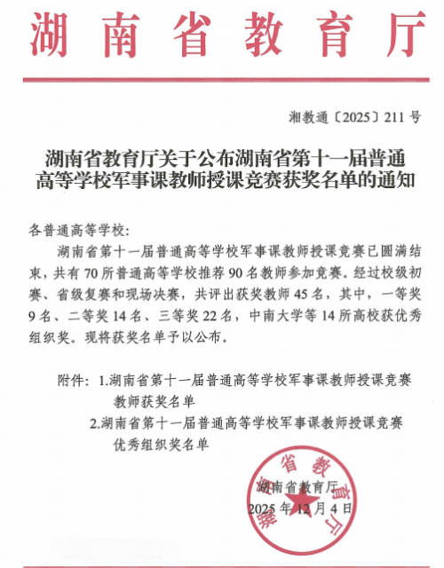 在湖南省教育厅主办的第十一届普通高等学校军事课教师授课竞赛中,我院雷茜老师凭借扎实的课堂功底和生动的教学设计,获得三等奖!这是我院首次参加这项省级赛事就拿到奖项,实现了“从0到1”的突破。