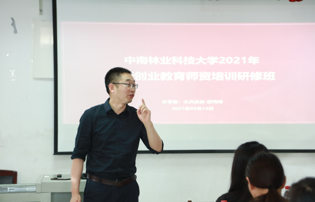 为切实做好院深化高等学校创新创业教育改革,促进专业教育与创新创业教育有机融合,进一步发挥我院创新创业教师教育导向功能。2021年5月14日,创新创业学院选派传媒与艺术设计学院杜远老师、管理学院黄丹青老师、信息与工程学院李婷老师、经济学院张芳老师、语言文化学院曾懿老师,参加了由中南林业科技大学举办为期两天的创新创业教师培训班。