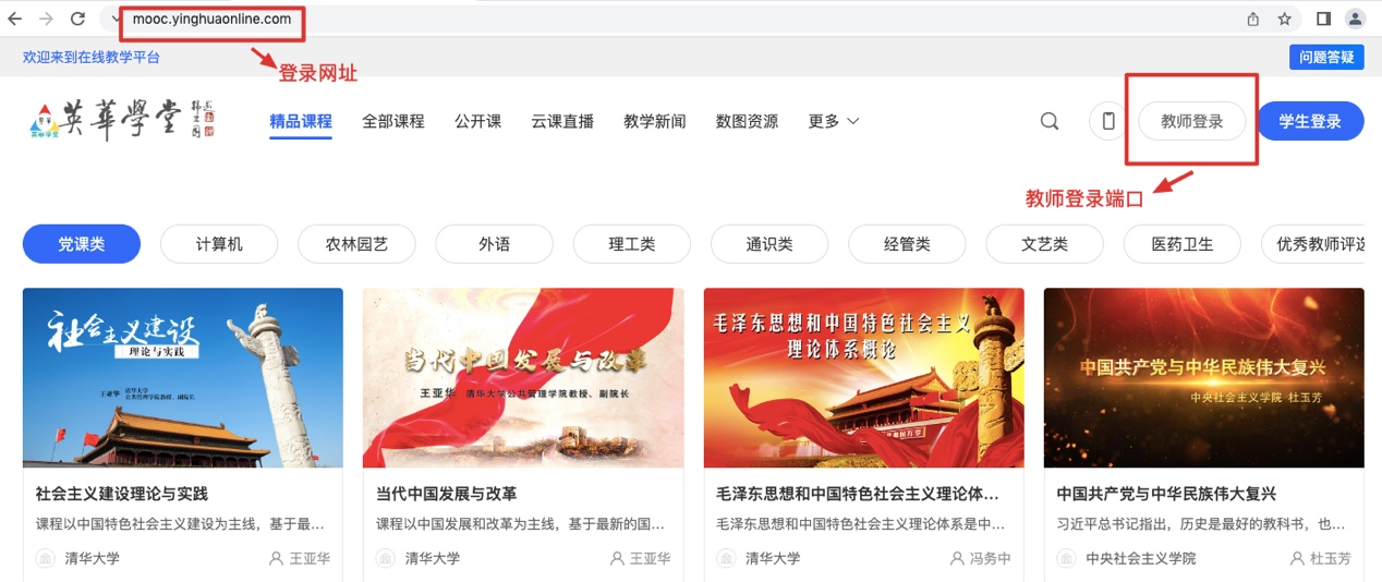 第一步:网址登录https://mooc.yinghuaonline.com/