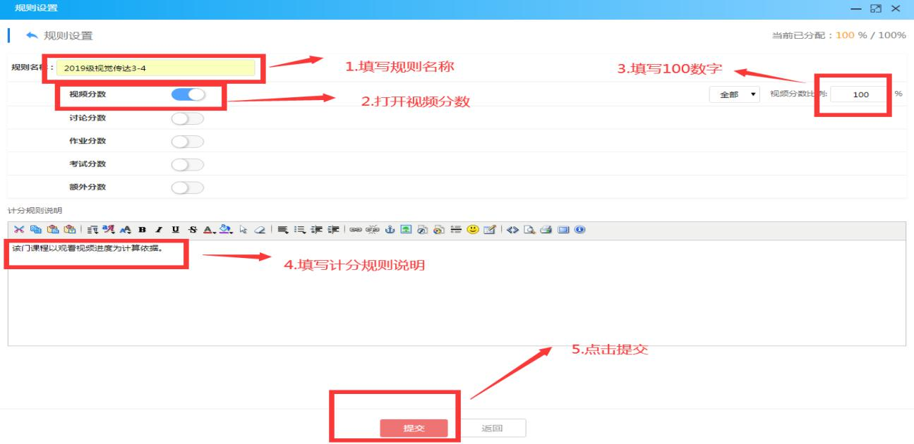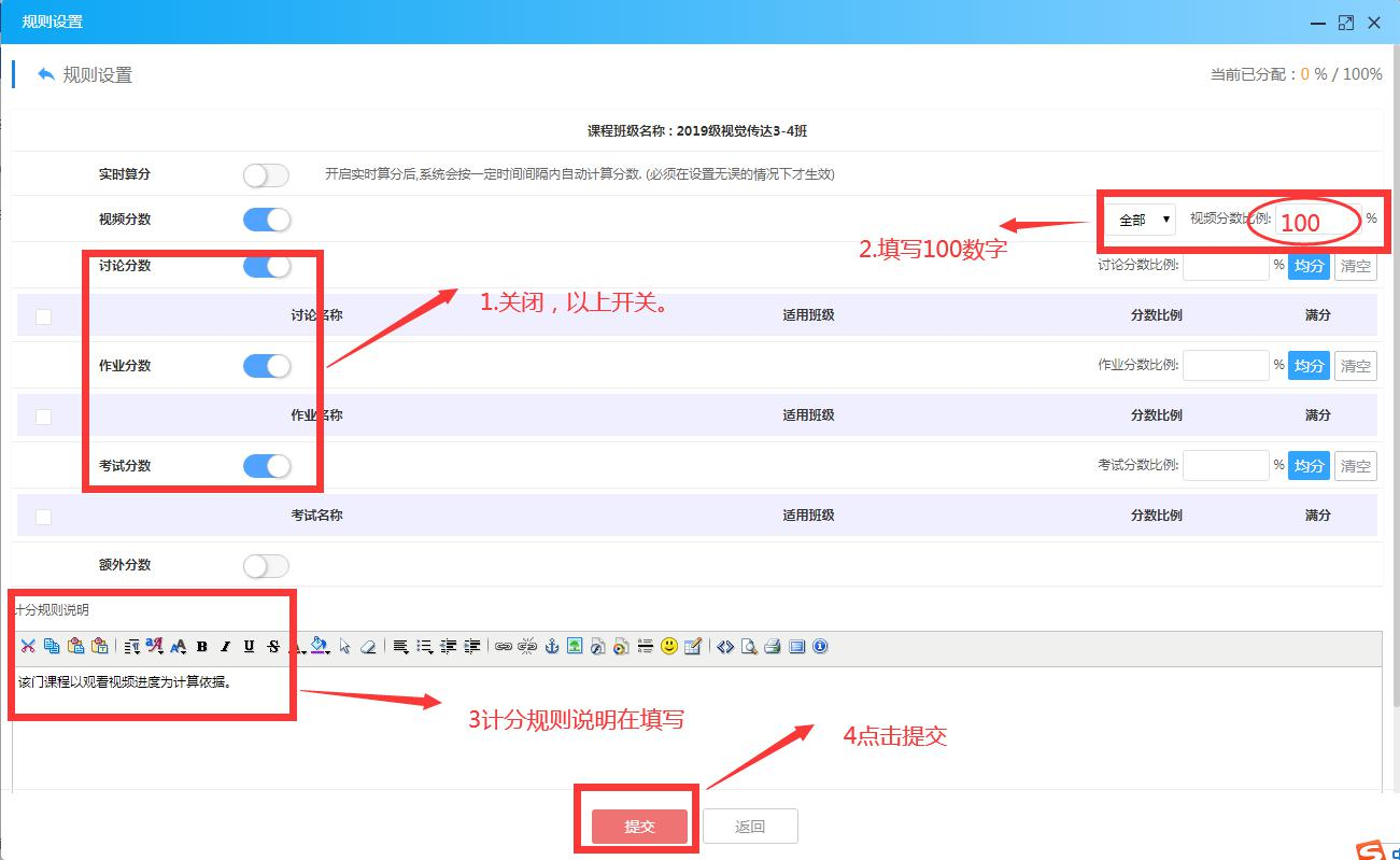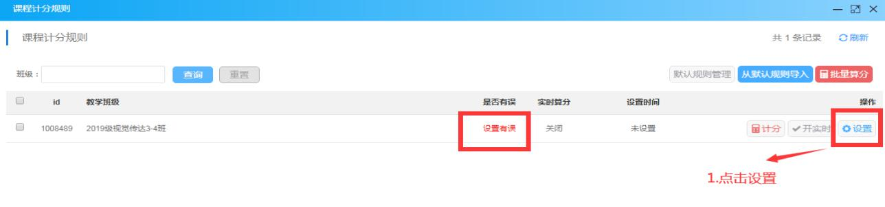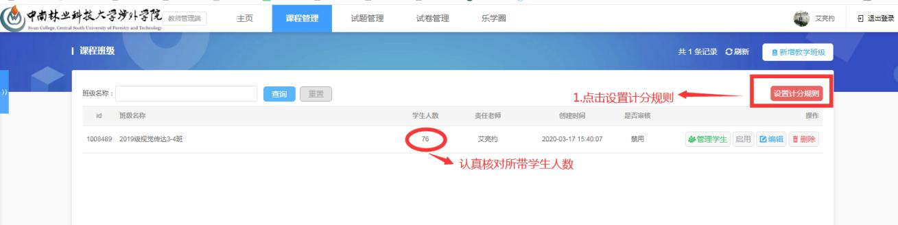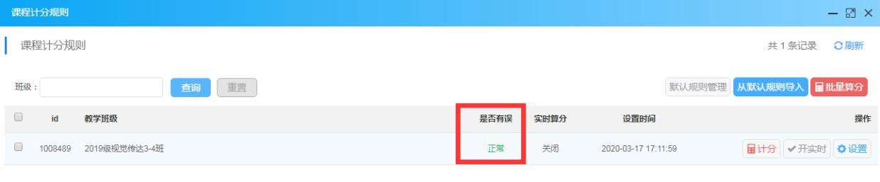 2.进入课程计分规则,勾选教学班级,点击默认规则管理: