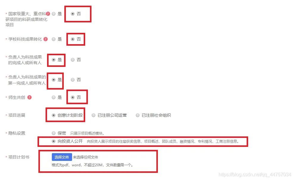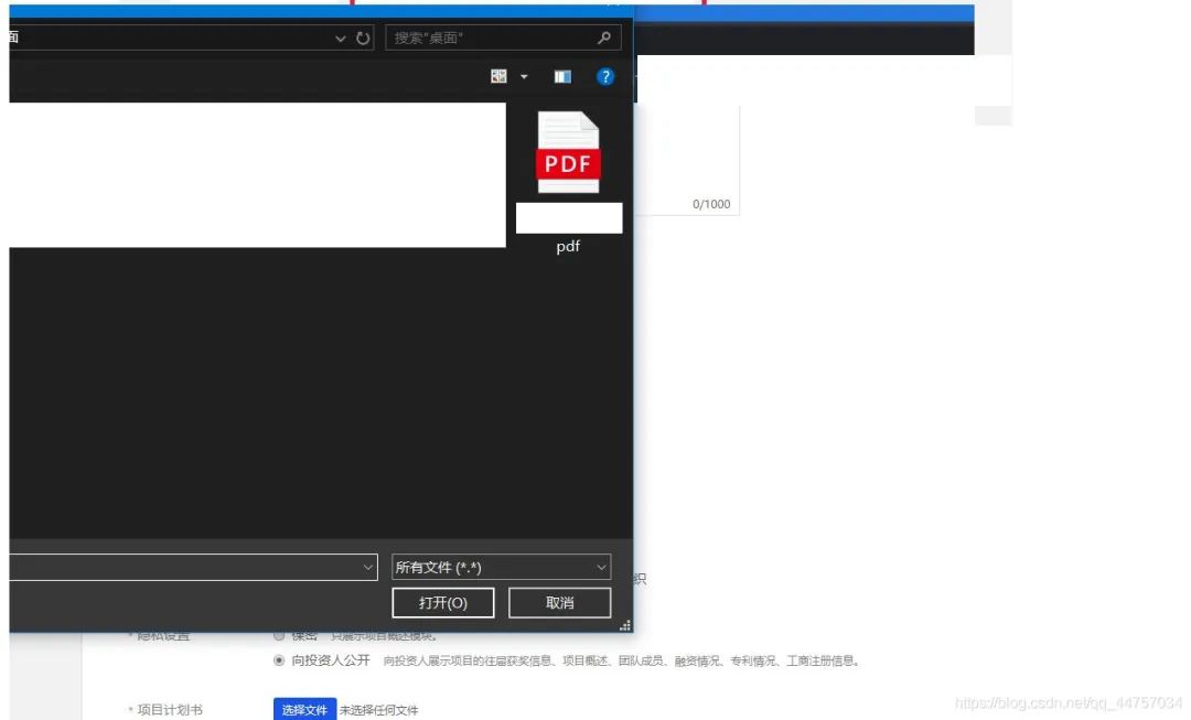 3、点击上传项目(上传的项目名称需要和上面填写的项目名称一致)并且要上传PDF格式的项目(需要将doc格式的项目转换为PDF)