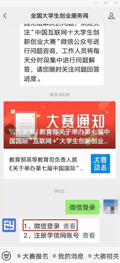 微信绑定:进入微信公众号后,输入关键词“微信登录”,公众号将自动回复登录入口,完成学信网账号与微信账号绑定流程并保持登录状态。
