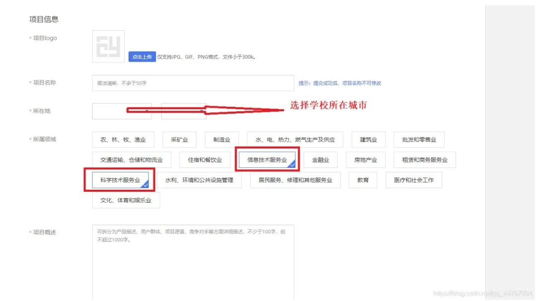 设置头像、项目名称、所在地、所属领域、项目概述