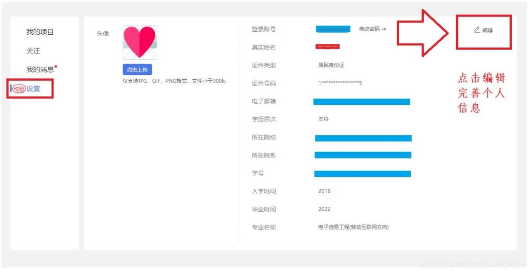 三、登录进入后完善个人信息