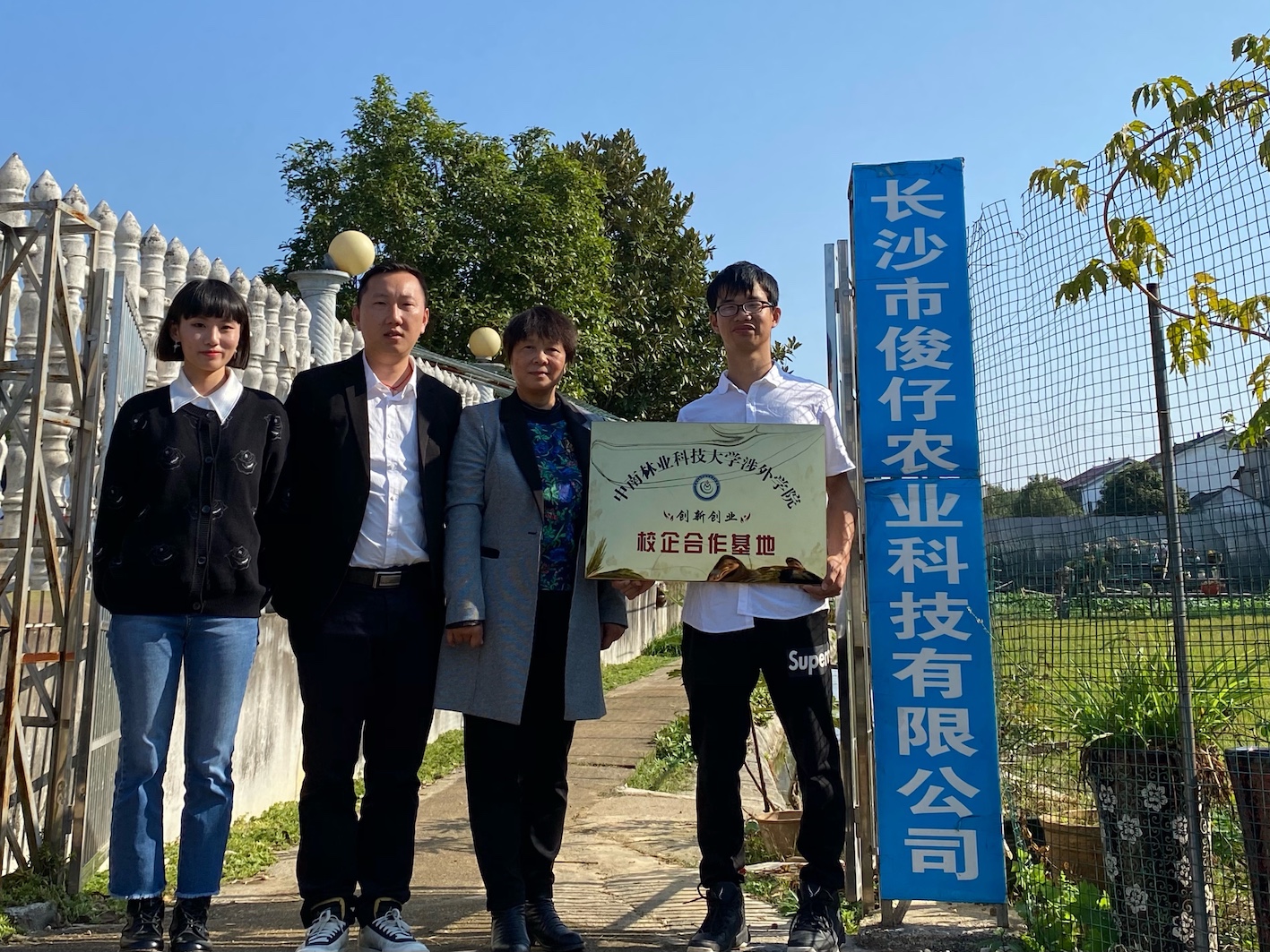 2020年11月18日,中南林业科技大学涉外学院副院长马宗艳、大学生创新创业中心主任艾亮杓、指导老师曾娴鸣以及大学生创新创业服务部成员一行人前往长沙市俊仔农业科技有限公司进行校企合作基地挂牌仪式。