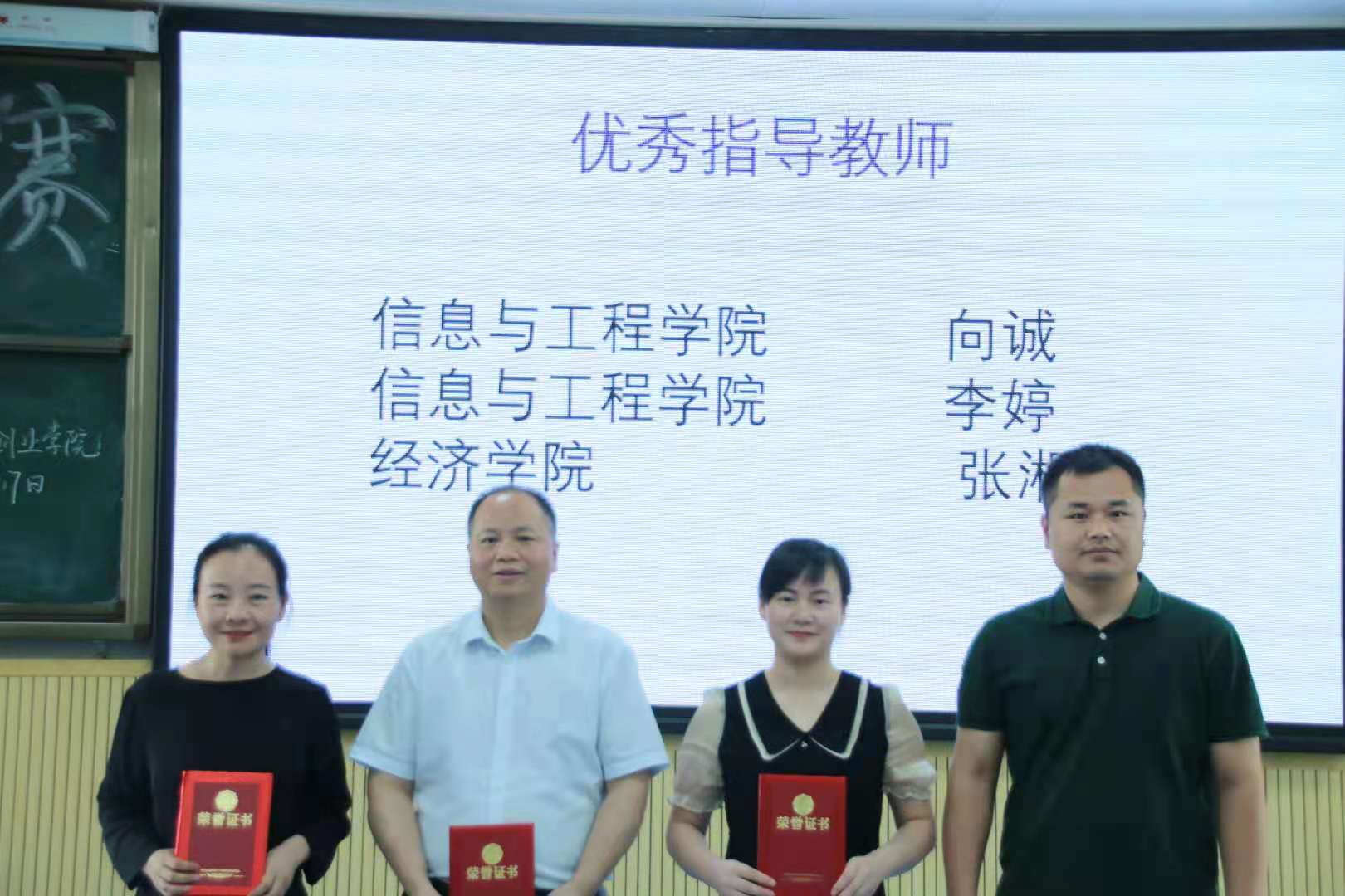 优秀指导教师:来自信息与工程学院的向诚老师、李婷老师,来自经济学院的张湘宁老师。