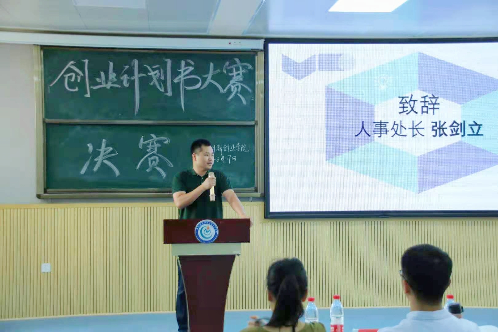人事处长张剑立在致辞中谈到,当今是创业的时代,大学生作为新生力量,应不断学习,深入落实大众创新、万众创业的精神,快速成长,筑梦未来。随后,他宣布比赛正式开始。