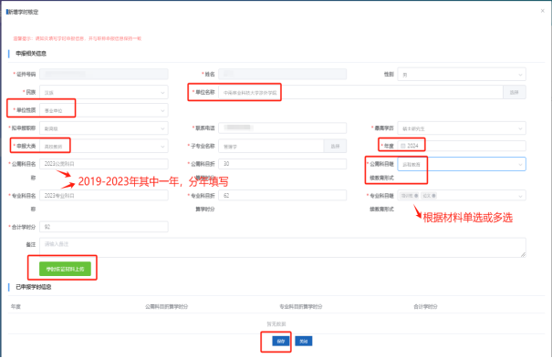 第5步:点击“新增学时核认申报”。第6步:如实填写学时申报信息,并点击“学时佐证材料上传”。