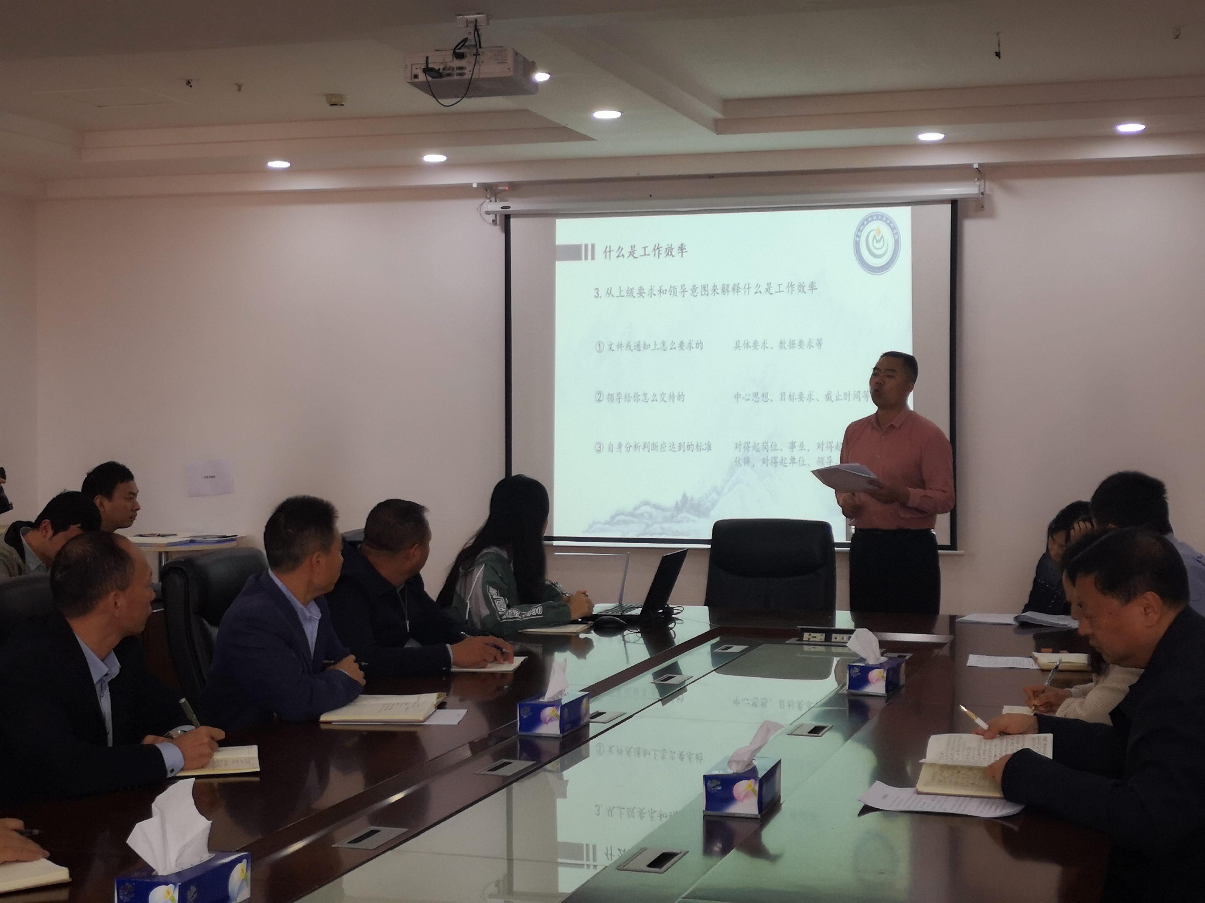 院长助理刘诗福围绕“什么是工作效率”、“为什么要提高工作效率”、“怎样提高工作效率”三个方面,通过理论与实践相结合的方式,生动地为大家阐释了工作效率的重要性以及如何通过提升工作效率来不断提升个人综合能力。