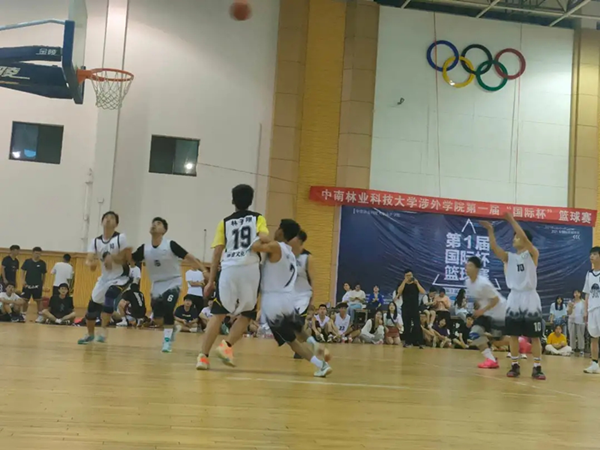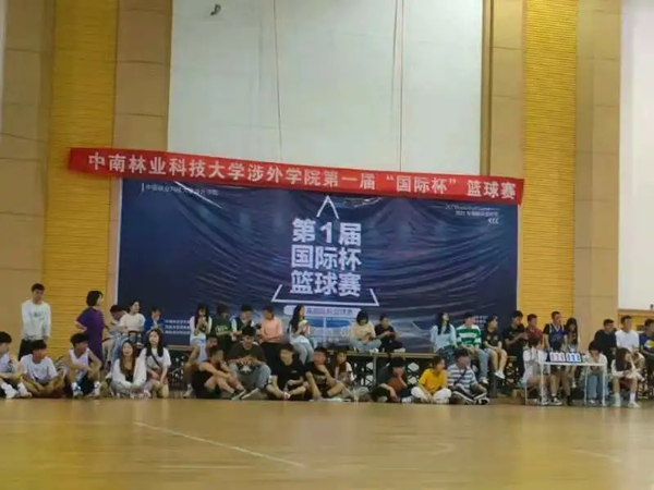 2021年5月11日下午中南林业科技大学涉外学院第一届“国际杯”篮球赛在体育馆举行。