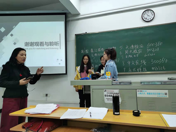 具体做法是:各小组根据教师提供统一的分析模版,自己选择一个深沪股市股票代码后3位与小组某成员学号后3位数字匹配的上市公司。然后分别从经营环境、财务能力、公司前景和存在的问题与对策等方面对各自的公司进行分析。具体有学生上台进行PPT演示环节、教师点评环节和教师提问学生答疑环节。