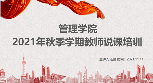 “说课”是教师钻研教材、探讨教法、不断提高教学水平的有效方法,也是促进教师专业化发展的有效途径。为促进青年教师的快速成长,培养青年教师把握教材和处理教材的能力,提高课堂教学水平,达到以“说”促“教”的目的。管理学院于11月11日下午在1210教室举办说课培训,由汤健教授主讲,我院全体教师参加,本次培训由肖菲副院长主持。