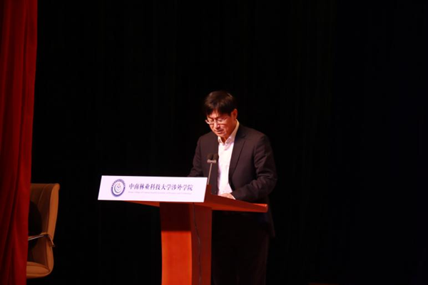 典礼开始,由中南林业科技大学涉外学院院长周志宏教授对新同学致辞,首先向大家强调了持续学习的重要性,教育同学们在中南林业科技大学涉外学院不断的学习,不断的进步,最后向同学们致以美好的愿景和期望。
