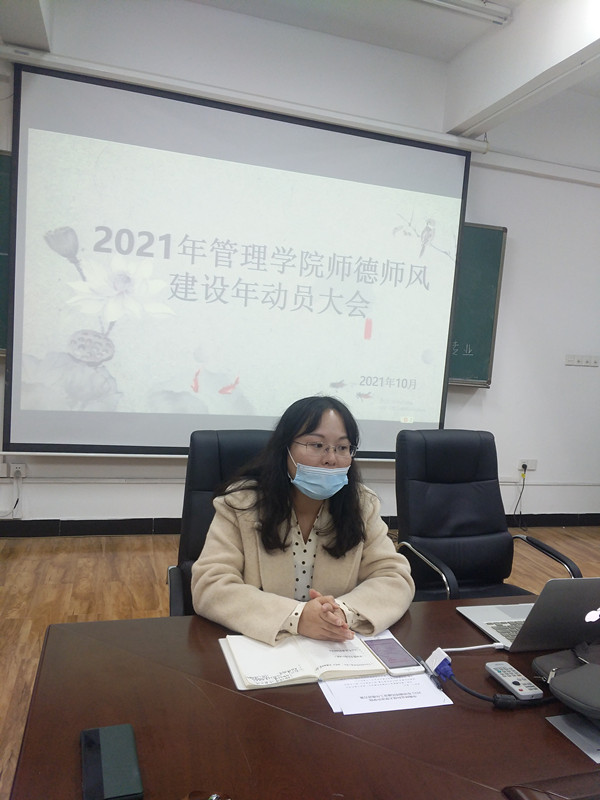 为了进一步贯彻落实湖南省“师德师风建设年”推进方案和学院师德师风建设2021年实施方案,大力弘扬高尚师德师风,全面提升教育教学质量。10月21日下午,我院全体教师在1204会议室召开管理学院2021年师德师风建设年再动员大会。