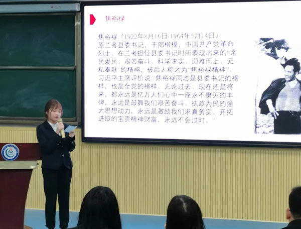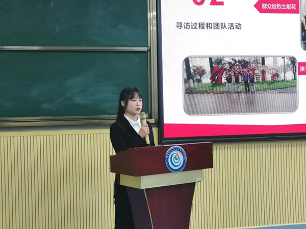 颜淑萍同学对她们团队的作品进行了展示,她们以“走进红色文化”为主题,从红色文化的内涵和意义、寻访过程和团队活动、英雄人物与事迹以及活动总结四个部分进行了详细的讲述。