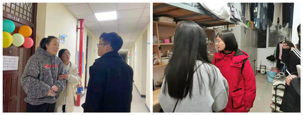 走访过程中辅导员们对15栋和17栋的同学们进行了慰问,在本次查寝活动中,辅导员们对寝室的安全情况以及内务是否整洁做了仔细的检查。老师们强调在宿舍须安全用电,严禁使用违规电器,提醒同学们要提高安全防患意识,切不可粗心大意。除此之外,老师们还亲切的与同学们探讨了如何构建和谐的宿舍关系,营造更好的宿舍氛围!