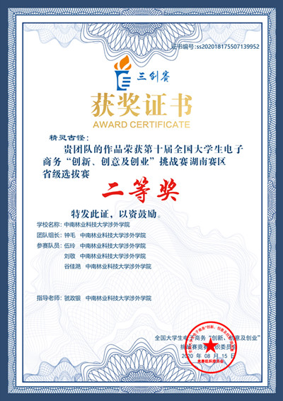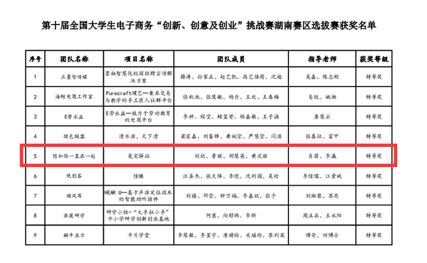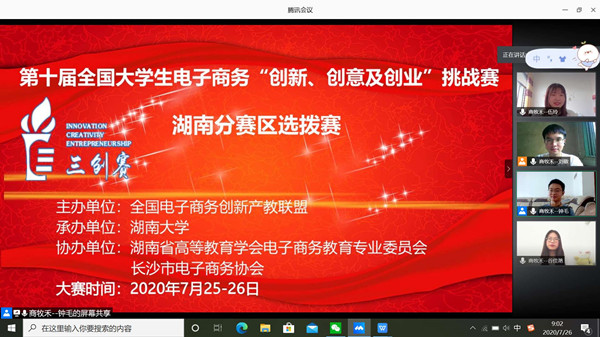 7月26日,2020年第十届全国大学生电子商务‘创新、创意及创业’挑战赛湖南赛区选拔赛在线上完成评选并闭幕。本次大赛,我院学子与中南大学、湖南大学在内的多所省、部级“双一流”高校学生同台竞技,经过通讯赛、中级赛、高级赛四轮激烈比拼,从来自全省13所高校172支晋级省赛的队伍中脱颖而出,分别荣获湖南赛区特等奖和二等奖,由我院肖菲、李瀛老师指导的2017级国贸专业学生刘欣、鲁丽、胡慧英、黄庆丽等四位同学组成的“想和你一直在一起”队提交的项目——《觅宠驿站》项目获湖南赛区选拔赛特等奖;由我院虢政银老师指导的2018级市营专业学生钟毛、刘敬、谷佳滟、伍玲等四位同学组成的“精灵古怪”队提交的项目——《商牧禾》项目获得湖南赛区选拔赛二等奖。