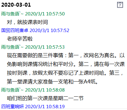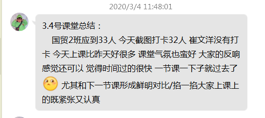 第二周的教和学大家丝毫没有懈怠,到课率和上课的互动频率进一步提升。这一点是超出我预期的,因为以往大三下学期大家会出现课堂的分化,一部分考研,一部分迷茫,所以很难达到目前这种99%的同学都紧跟老师的上课节奏的情况,所以说,疫情之下并非只有消极失望,也有团结,希望和欢声笑语。