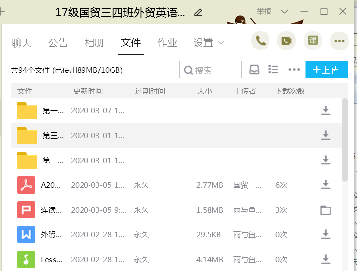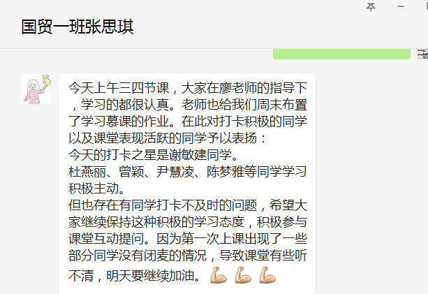 外贸谈判口语课程我们采取的是QQ屏幕分享的直播方式,课堂打卡,互动,答疑,作业和任务提交都在QQ群内完成。