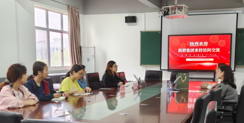 会议伊始,简聘集团人力资源部负责人蔡老师详细介绍了企业目前的人才需求情况。她表示,集团现阶段主要面向大四学生提供实习岗位,并设置清晰的晋升通道;同时面向低年级同学开放以周末为主的兼职实习机会,旨在为不同阶段的同学提供多样化的校外能力提升与成长平台。欧阳总进一步强调,简聘集团高度重视与高校的合作,希望以此次交流为起点,逐步打造稳定、长效的“就业实践基地”,共同培养符合社会需要的高素质管理人才。