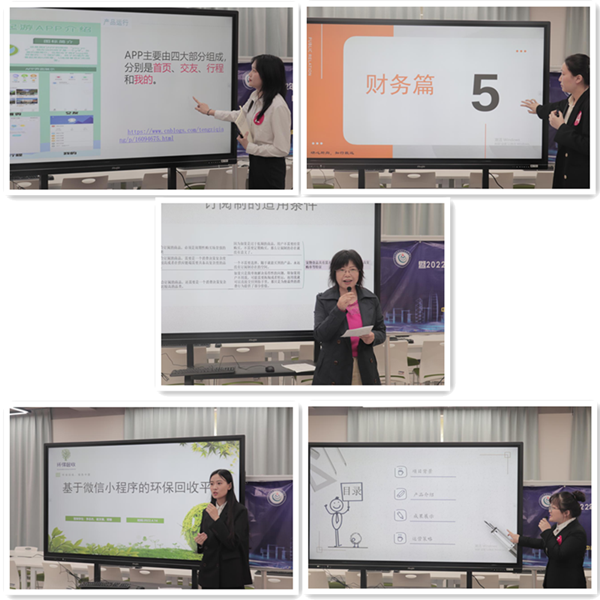 项目范围涉及社交、餐饮、研学、康养、环保、虚拟货币等多个领域。每支队伍的选手们都激情洋溢地阐述了自己团队的创新思维与创业理念,同时也自信、流利地向评委们讲解自己团队的创意项目,充分展示个人风采与团队水平。